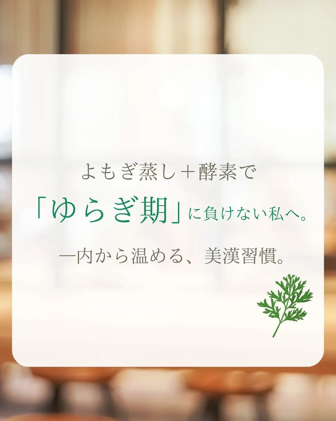 「ゆらぎ期」に負けない私へ🌿 「ゆらぎ期」に負けない私へ🌿「よもぎ蒸し+酵素」で内から温める、美漢習慣。年齢と共に減っていく酵素が体にどんな影響を与えるのか知っていますか?なんとなく疲れが抜けない冷えやすい、肌の調子が不…
