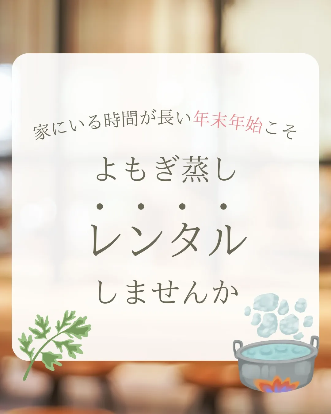 家にいる時間が長い年末年始こそ! 家にいる時間が長い年末年始こそ!\よもぎ蒸しレンタルしませんか?💭/・仕事が休み・家族が揃う・生活リズムがゆるむ=体を立て直すチャンス◎✨🏠「自宅」でやる良さ・好きな時間にできる・移動なし・冷…