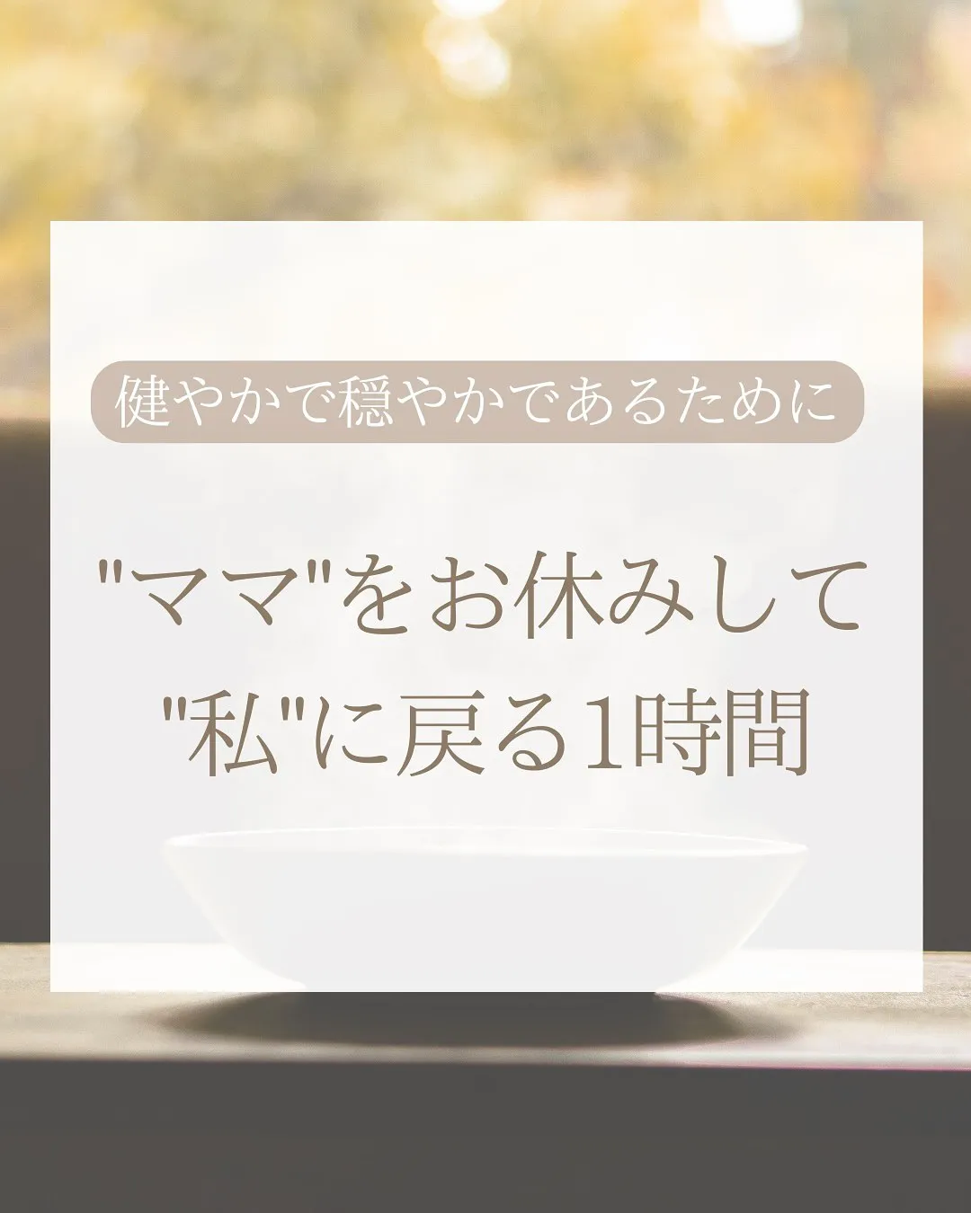 "ママ"をお休みして"私"に戻る1時間🕔 "ママ"をお休みして"私"に戻る1時間🕔毎日、家事に育児にお仕事に…気づけば自分のことはいつも後回し🌀「私、何が好きだったっけ?」「最近、自分だけの時間ってあったかな?」そう感じたことがあるあなた…